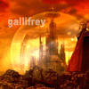 Description: The Gallifreyan Citadel from "Sound of Drums", a Time Lord standing to the right. Text: gallifrey