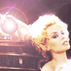 Description: Lalla Ward in costume for "Destiny of the Daleks", crouching in a shaft of light between two deep shadows.