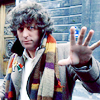 Description: Tom Baker and Mary Tamm lean against each other, half-smiles on their faces, their heads close together.